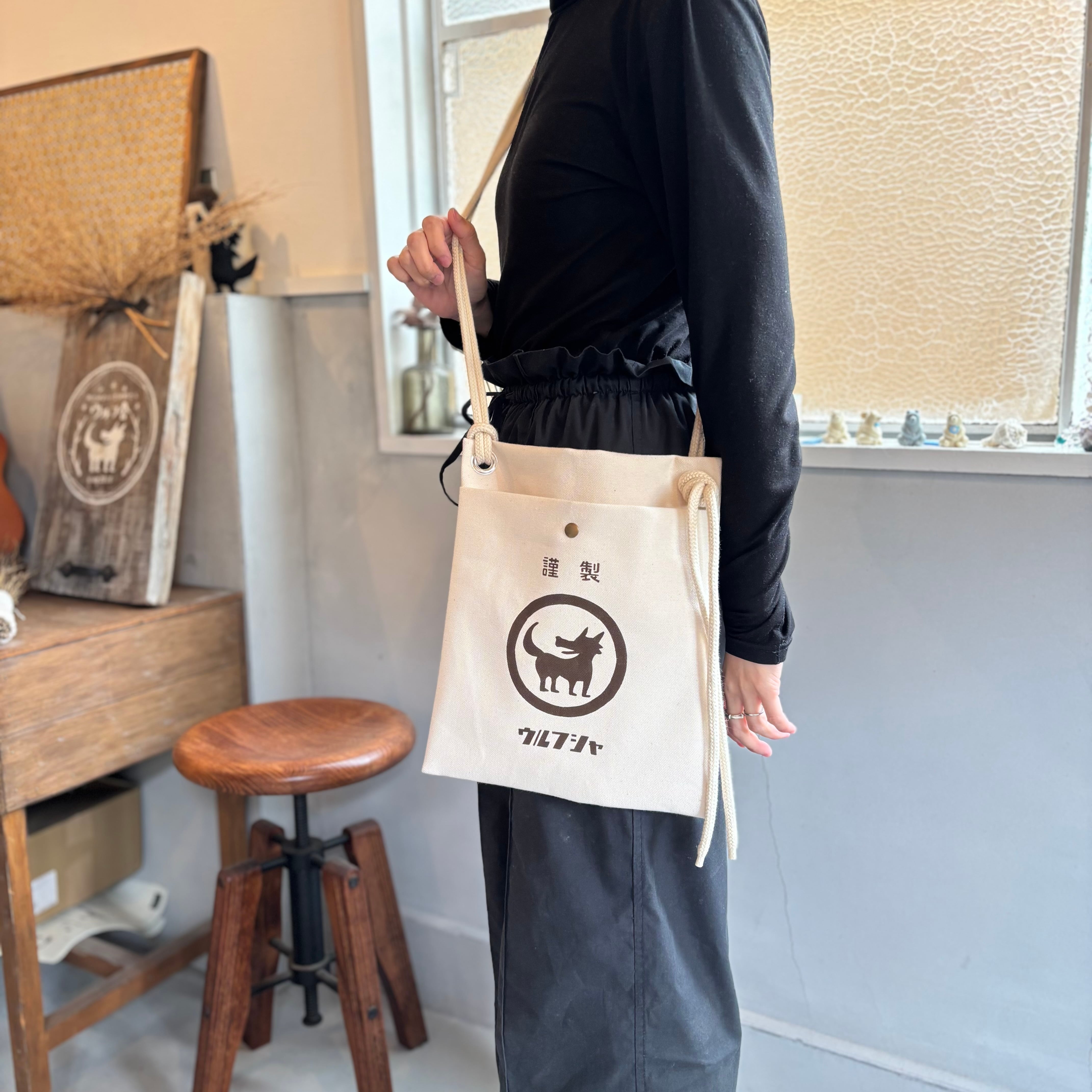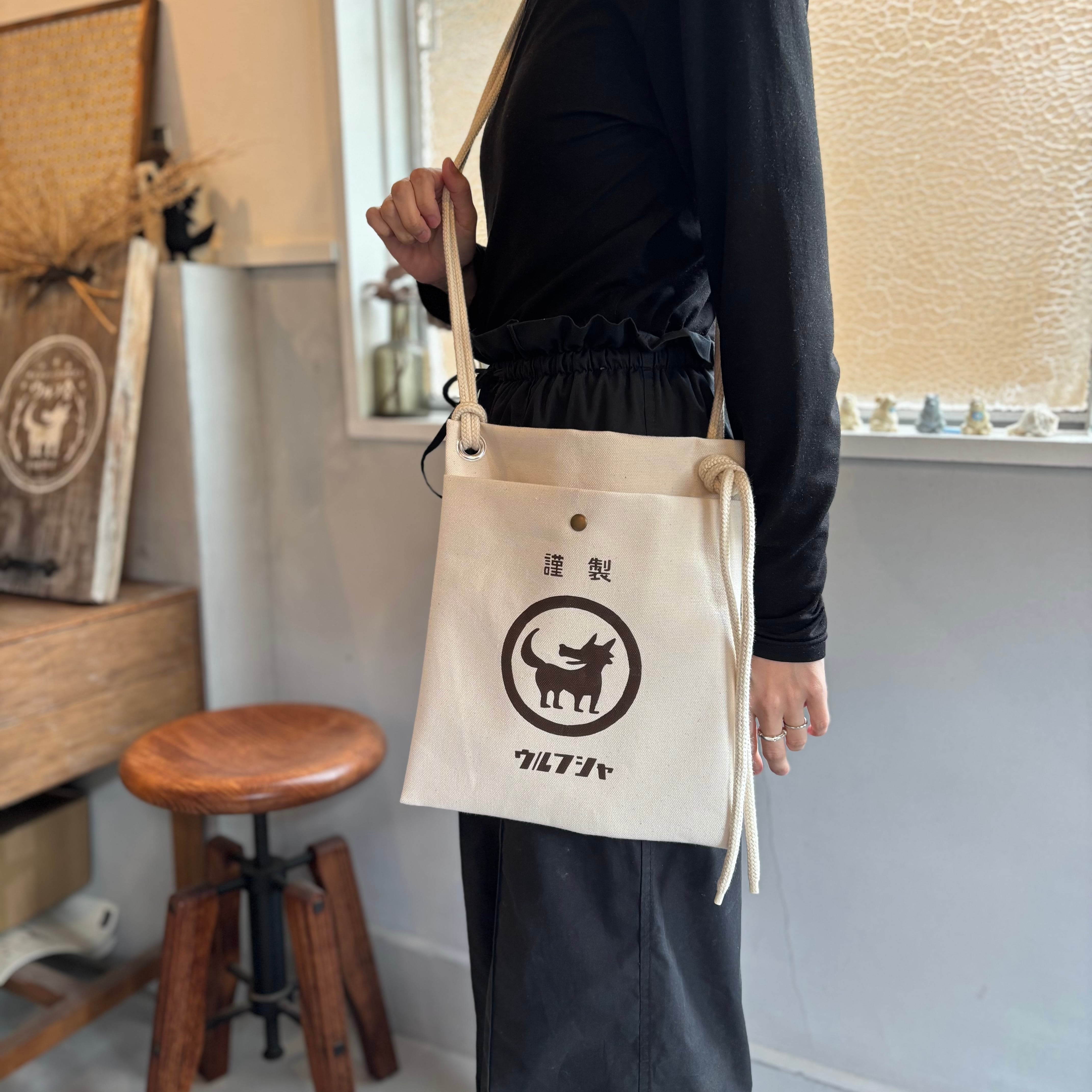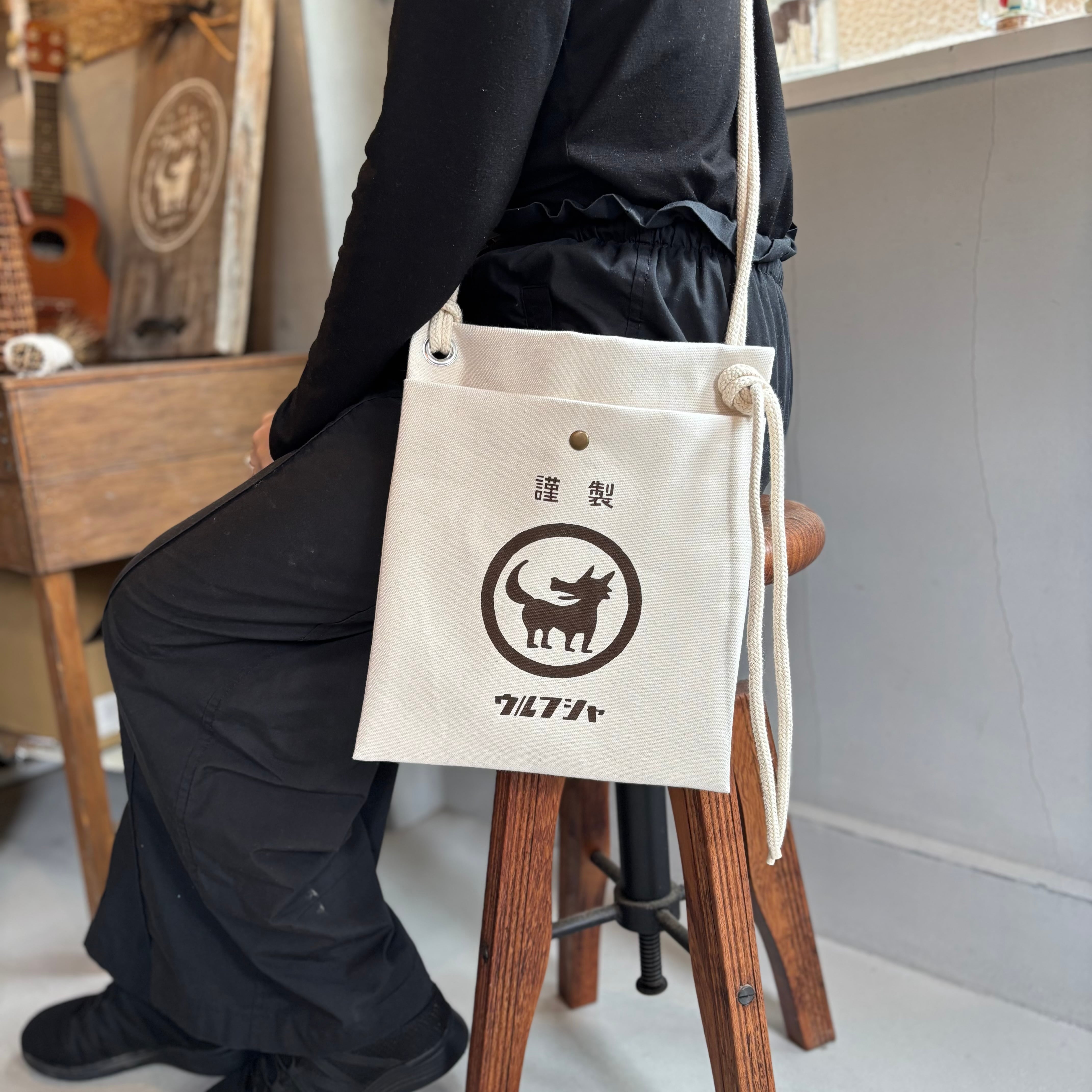 ●商品名:「ウルフ舎の大きい帆布サコッシュ」/色:きなり
