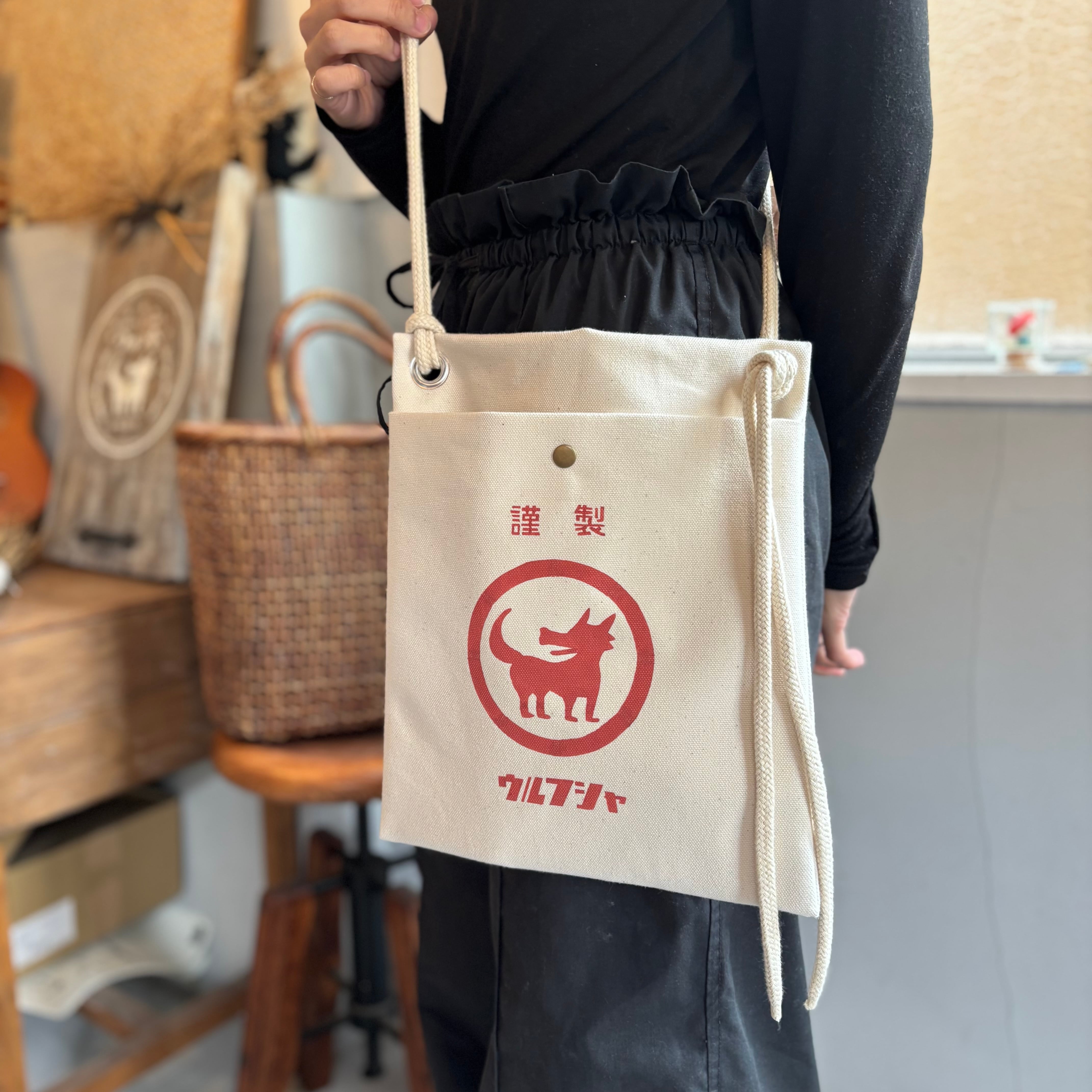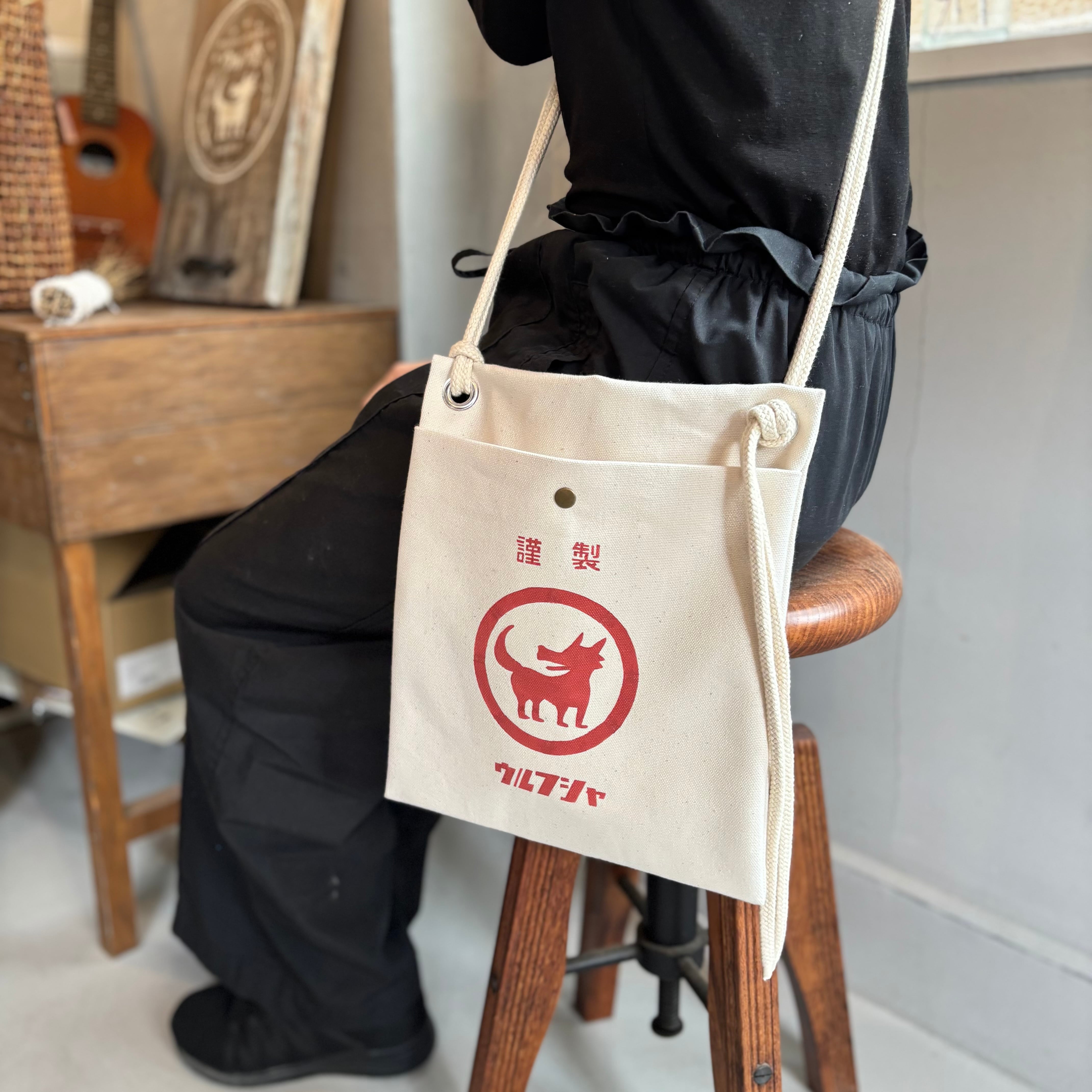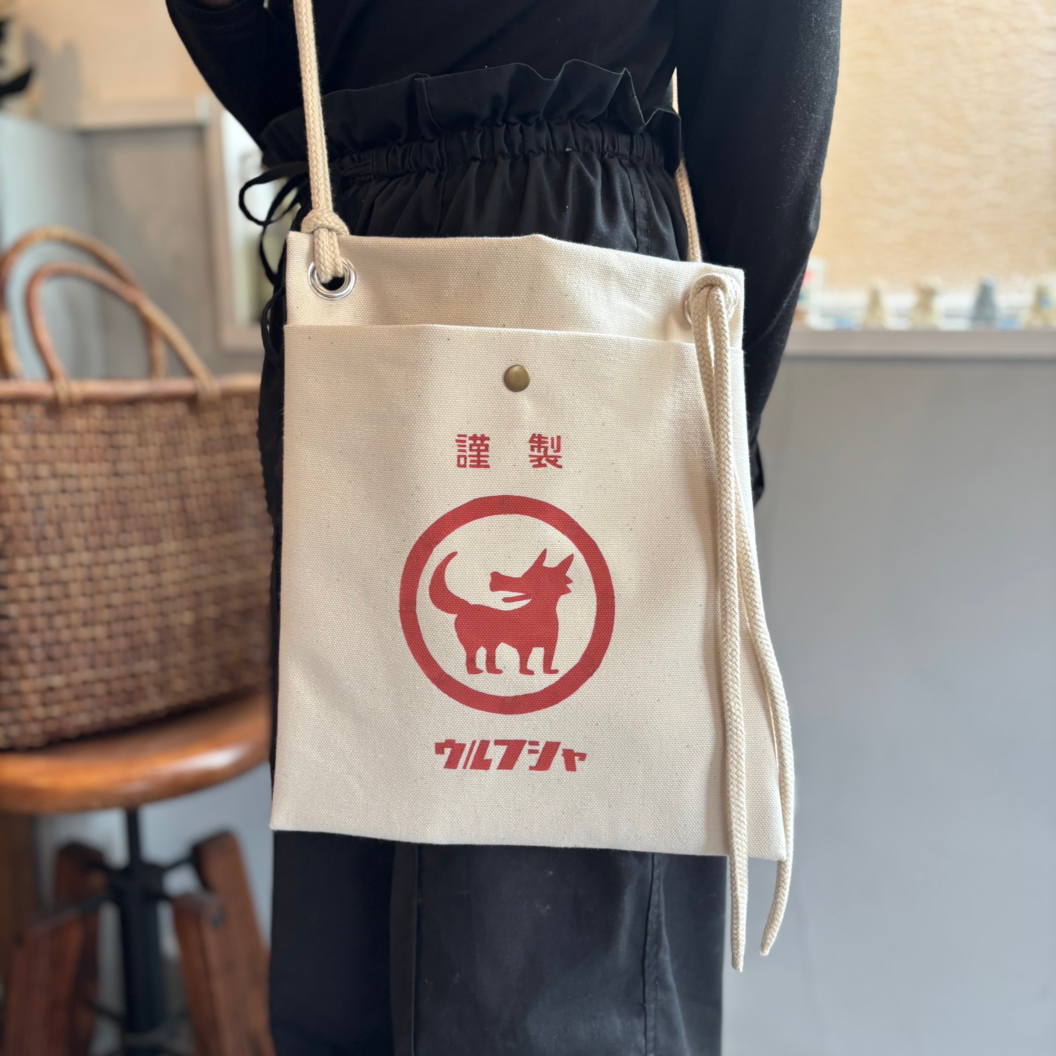 ●商品名:「ウルフ舎の大きい帆布サコッシュ」/色:きなり