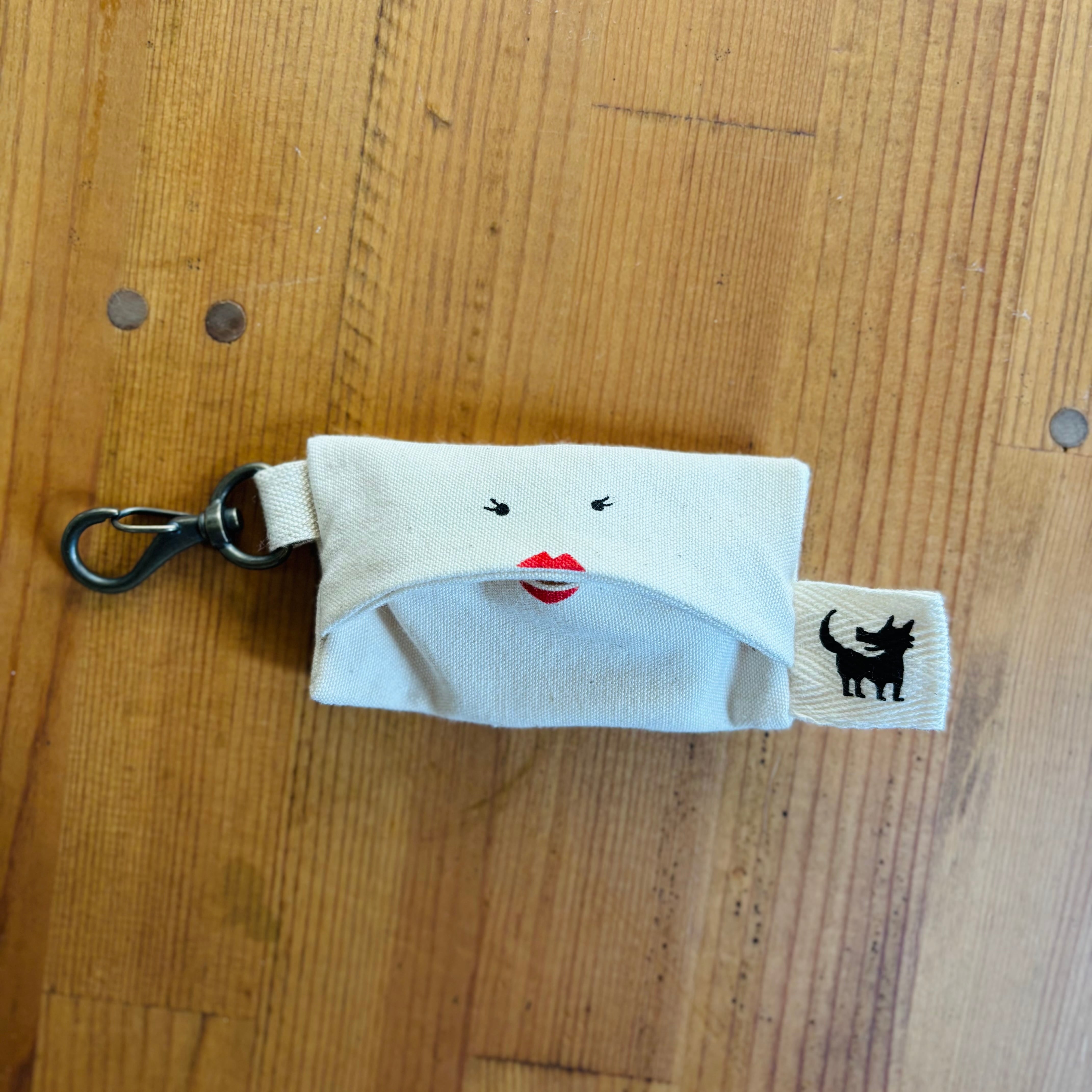 ウルフ舎が作った百均で販売されている携帯用ゴミ袋を入れるケースです。名前は『ポリべぇ〜』。ロール状のゴミ袋を入れると、お口から取り出すことができます。