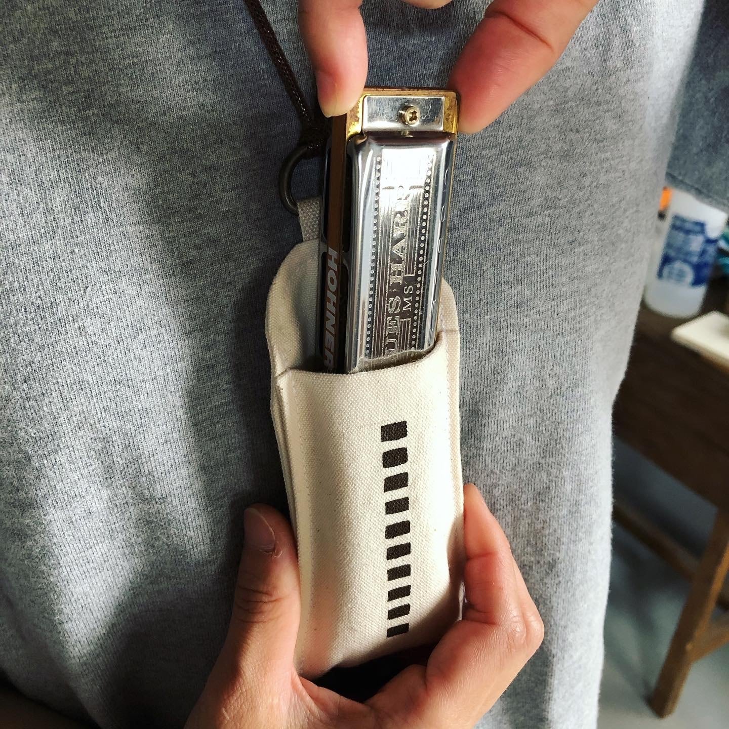 ハーモニカホルダー(ハーモニカ10cm×2.5cmサイズ:生成り生地:モノクロ)